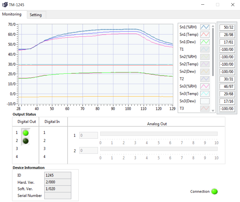 همچنین می توان چهار سنسور فقط دما را به چهار اتصال ورودی دستگاه متصل نمود. توسط تنظیمات دستگاه می توان تعیین نمود که هر کانکتور ورودی به چه نوع سنسوری(رطوبت-دما یا فقط دما) متصل شود.تعداد سنسورها نیز قابل انتخاب و پیکربندی است.