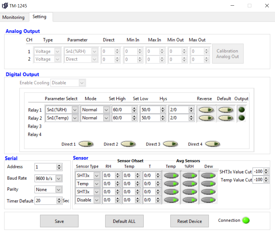 به همراه دستگاه یک نرم افزار کامپیوتری رایگان ارائه می شود که توسط آن و با یک رابط usb به rs485 می توان کلیه پارامترهای دستگاه را مانیتور و تنظیم و یا پیکربندی نمود.لینک نرم افزار: https://tikatec.ir/uploads/Product_Files/Setting/Tm-Setting/TM-Setting1.30.41.rar