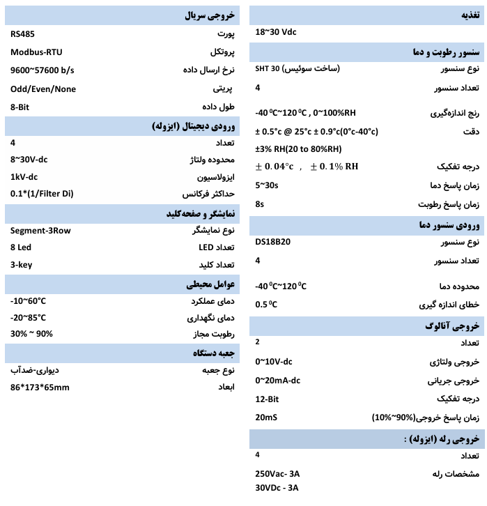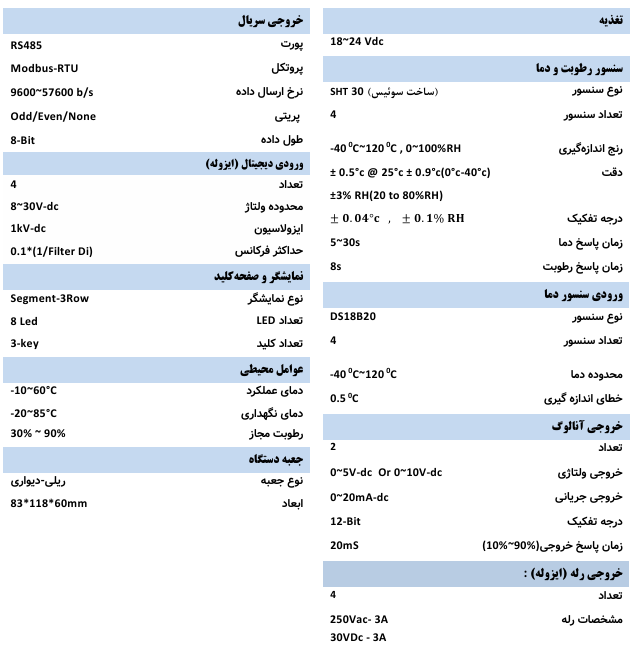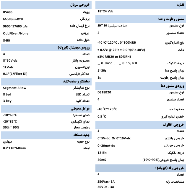 - امکان اتصال یک تا چهار سنسور کالیبره شده رطوبت دما
