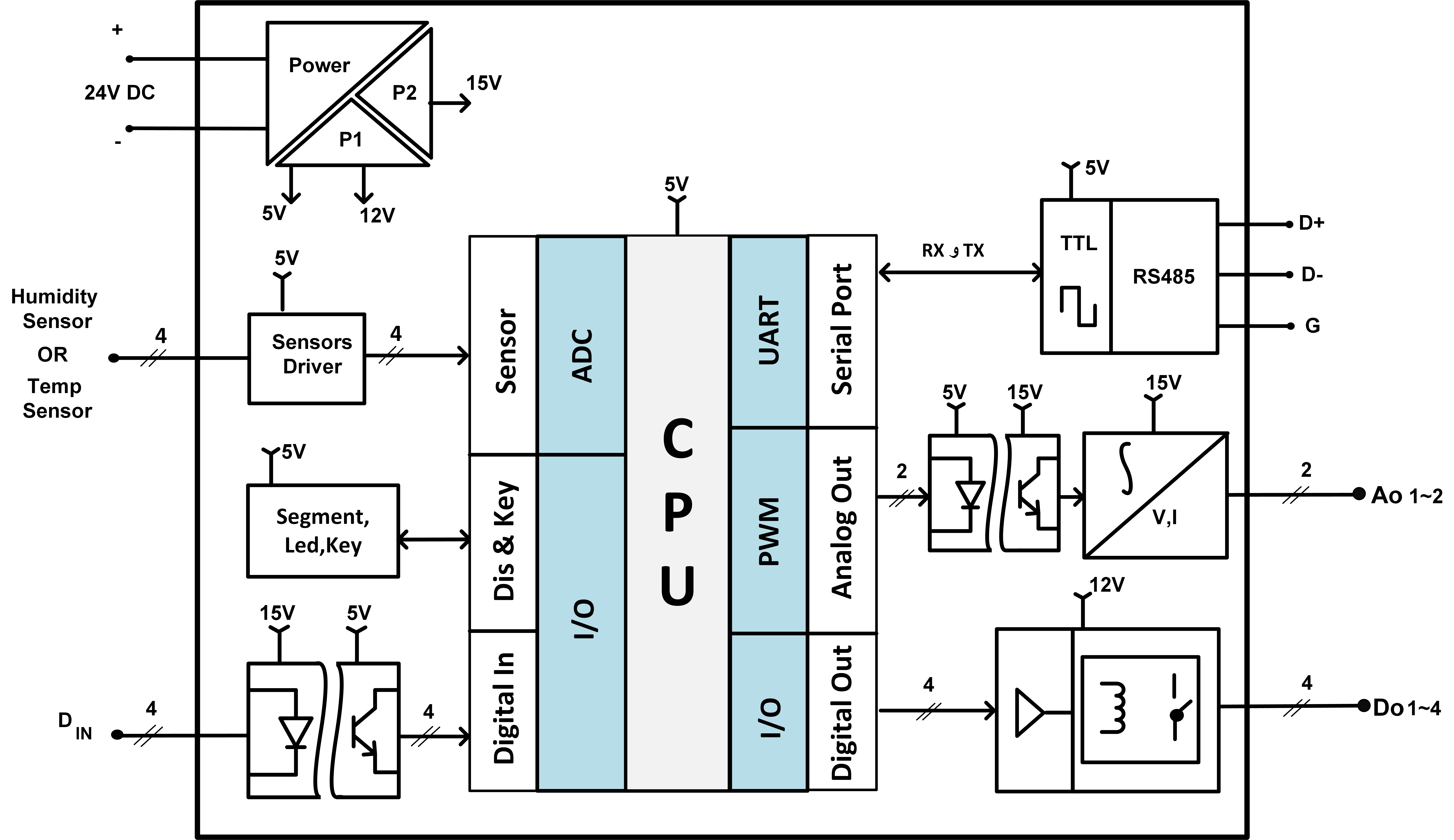 اين ترانسميتر رطوبت و دما قابل برنامه ريزي بوده و شما مي توانيد خروجي هاي آن را برنامه ريزي كنيد. به عبارتی مي توانيد تعيين كنيد كه خروجي هاي آنالوگ یا دیجیتال دستگاه از دما، رطوبت و یا نقطه شبنم فرمان بگيرد.