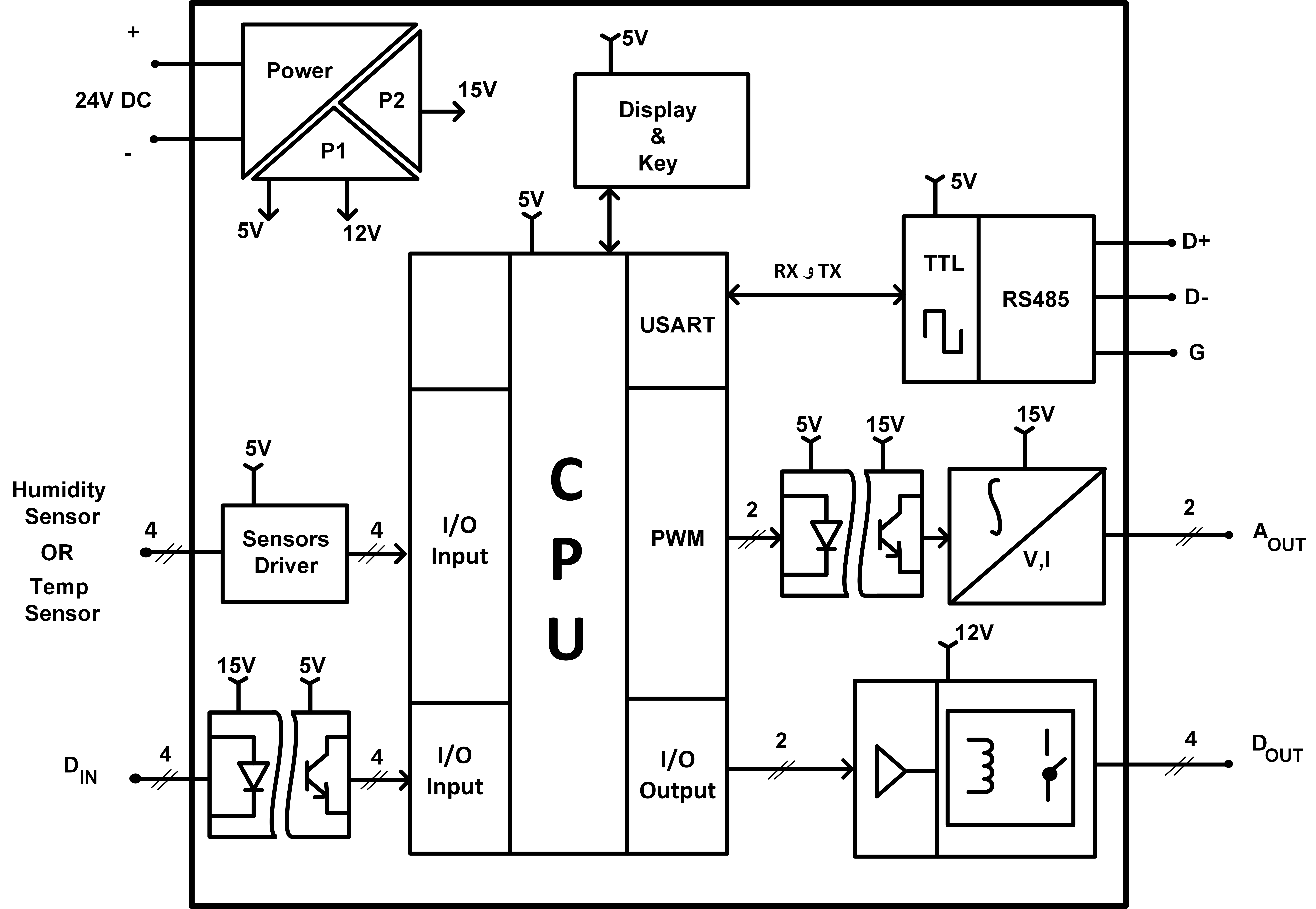 - چهار خروجی رله و یا چهار خروجی آنالوگ و چهار کانال ورودی دیجیتال ایزوله